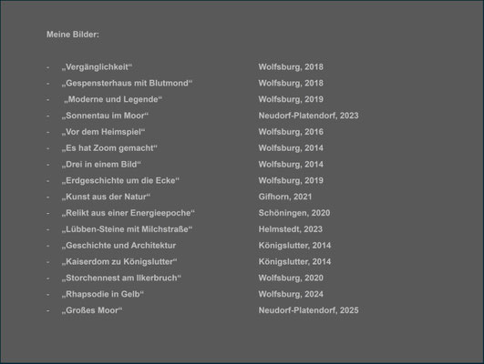 Ausstellungsbeginn ab 21. August 2025 bis 11.01.2026 im "Automuseum Wolfsburg" mit Bildern von Bernd Wewior und Dirk Gildemann. Link zur Ankündigung Automuseum Wolfsburg: Unsere Region im Bild. Fotoausstellung - Stiftung Automuseum Volkswagen