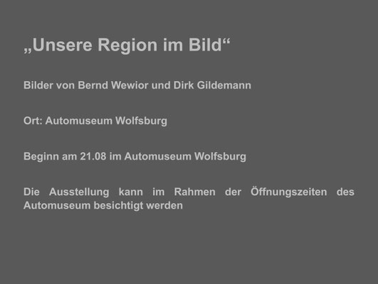 Ausstellungsbeginn ab 21. August 2025 bis 11.02.2026 im "Automuseum Wolfsburg" mit Bildern von Bernd Wewior und Dirk Gildemann. Link zur Ankündigung Automuseum Unsere Region im Bild. Fotoausstellung - Stiftung Automuseum Volkswagen
