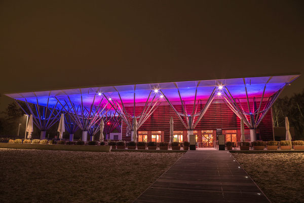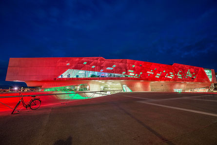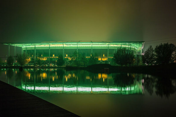 Dank der Digitalisierung von Fotos, können wir heut zu Tage leichter schöne Bilder auch im Halbdunklen machen, ohne ein Blitzlichtgerät zu verwenden. Gerade bei architektonisch interessanten Gebäuden (die halten schön still) macht es Spaß, sie im angestrahlten Zustand richtig zu fotografieren. Wir haben in Wolfsburg das Glück, dass einige schöne Gebäude auch am Abend angestrahlt werden. Ich nenne hier mal das Kunstmuseum, das Planetarium mit Giraffe und Theater, das Phaeno, die Autostadt, der Kolumbianische Pavillon, die Volkswagenarene und noch viel mehr, siehe auch unten.