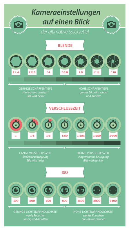 Links in der Grafik findet ihr zusammengefasst die drei Stellschrauben für eine Kameraeinstellung und deren Abhängigkeiten.