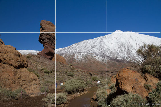 Landschaftsbilder überzeugen erst, wenn sie durchgehend scharf sind. Dies erreicht ihr, indem ihr eine kleine Blende verwendet, so 8f bis max. 16f. Ich habe schon oben darauf hingewiesen, den Blendenwert nicht bis zum Anschlag hochzuschrauben. Profis verwenden folgenden Trick: Sie fokussieren manuell und legen den Schärfefokus auf das Ende des ersten unteren Drittel. So wird das Bild von vorn bis hinten scharf, siehe auch Bild oben.